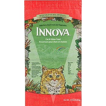 Innova Cat & Kitten Dry Cat FoodNutrition at its best, naturally! Our Innova Cat & Kitten Dry Cat Food will satisfy your kitten or cat's appetite with the cravable flavors of turkey and chicken fortified with extra nutrients from fresh fruits and vegetables like potato, apples, carrots, and alfalfa sprouts. With a source of live naturally occuring microorganisms normally found in a healthy digestive tract, Innova Cat & Kitten Dry Cat Food offers excellent digestability and nutrient absorption.Innova Cat & Kitten Dry Cat Food is wholesome food for a healthier cat or kitten. Each bite is packed with fresh turkey and chicken to satisfy your cat's carnivorous cravings while whole fruits and vegetables supply naturally occurring beneficial antioxidants. Innova Cat & Kitten Dry Cat Food provides complete and balanced nutrition for cats of all ages. Innova has developed a nutrient-dense, varietal diet based upon a holistic approach - that is, a diet that provides optimum nutrition for kitten growth through adulthood.You will not be disappointed with